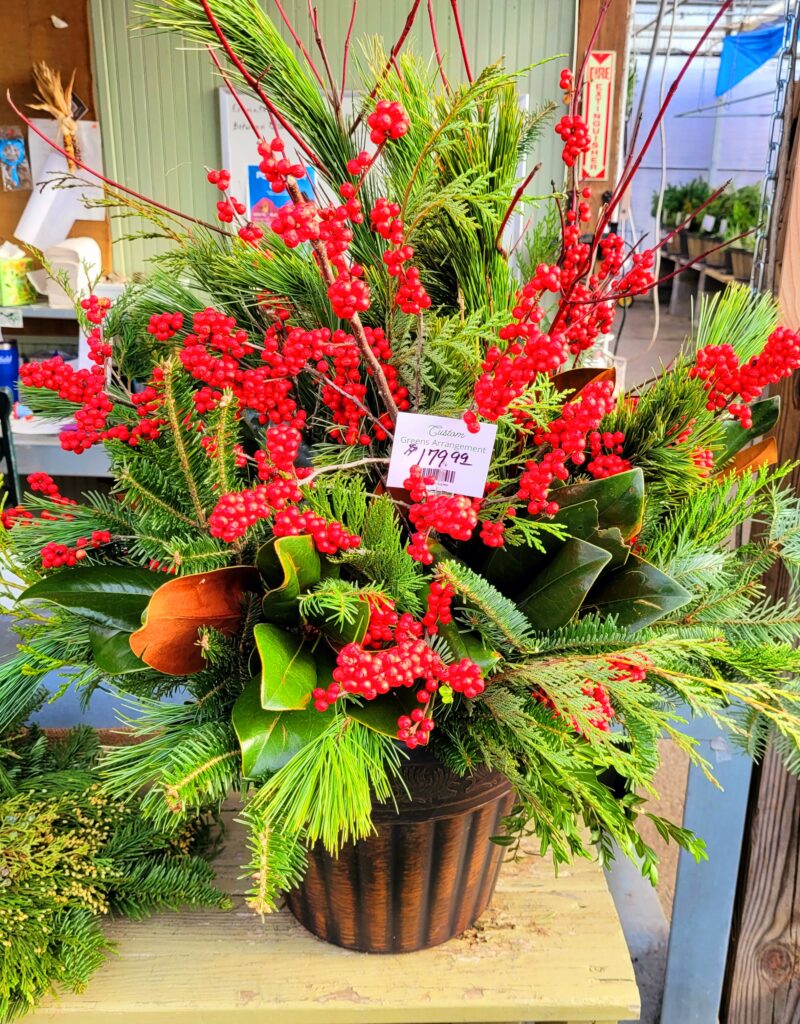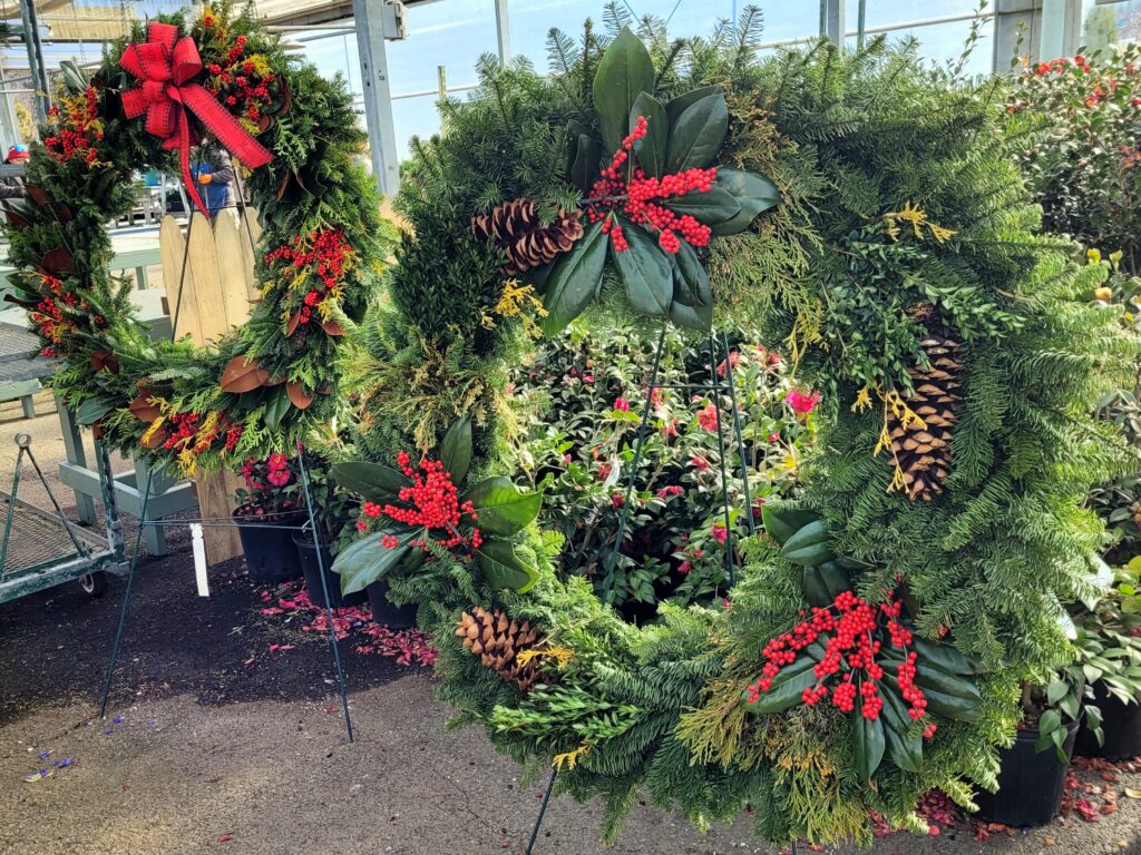 Wow, this store still has a great assortment of holiday greenery, wreaths and arrangements. I liked the bright red berries on these two large wreaths.
